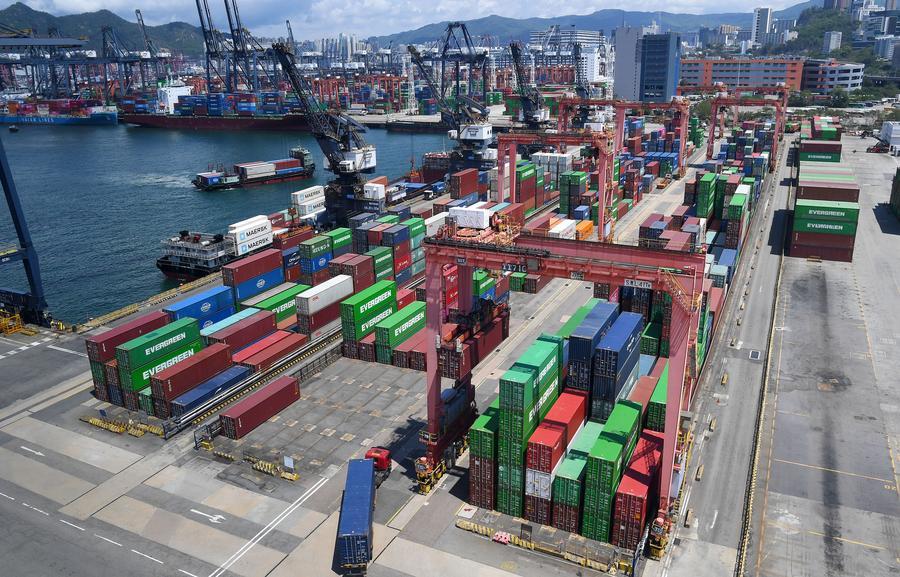 香港特別行政區コンテナ埠頭の様子。(5月22日撮影、香港=新華社記者/陳鐸)