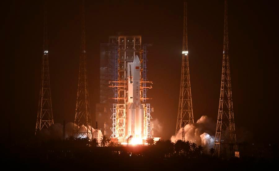 20日、文昌宇宙発射場から打ち上げられた運搬ロケット「長徵5號」。(文昌=新華社配信/都鑫鑫)