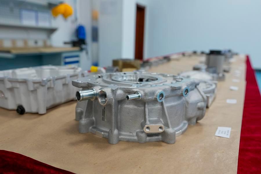 19日、「R05E」試作機に使われている部品の一部。(ハルビン=新華社記者/王松)
