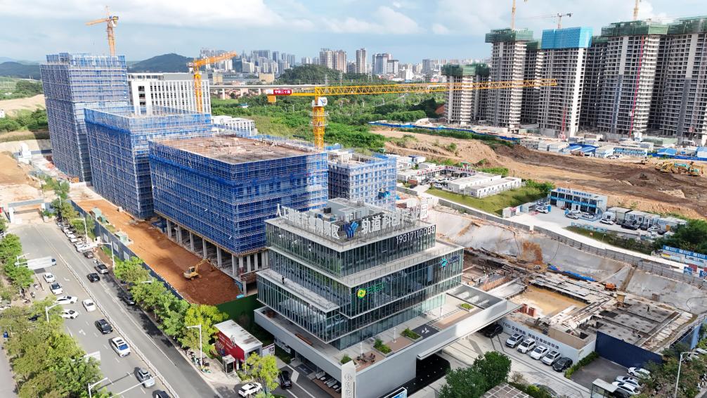 南寧軌道科技イノベーション産業パークの建設現場。(9月25日、ドローンから、南寧=新華社配信)