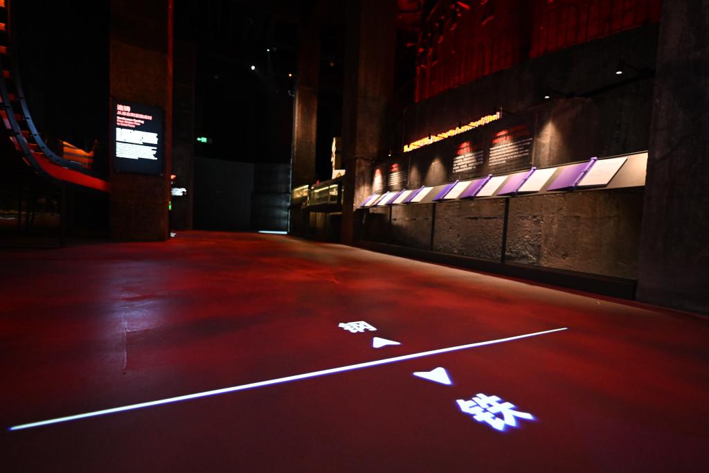 18日、北京市にある首鋼園の3號高爐で開催中の「鋼鉄時代」沒入型展の様子。(北京=新華社記者/陳鍾昊)