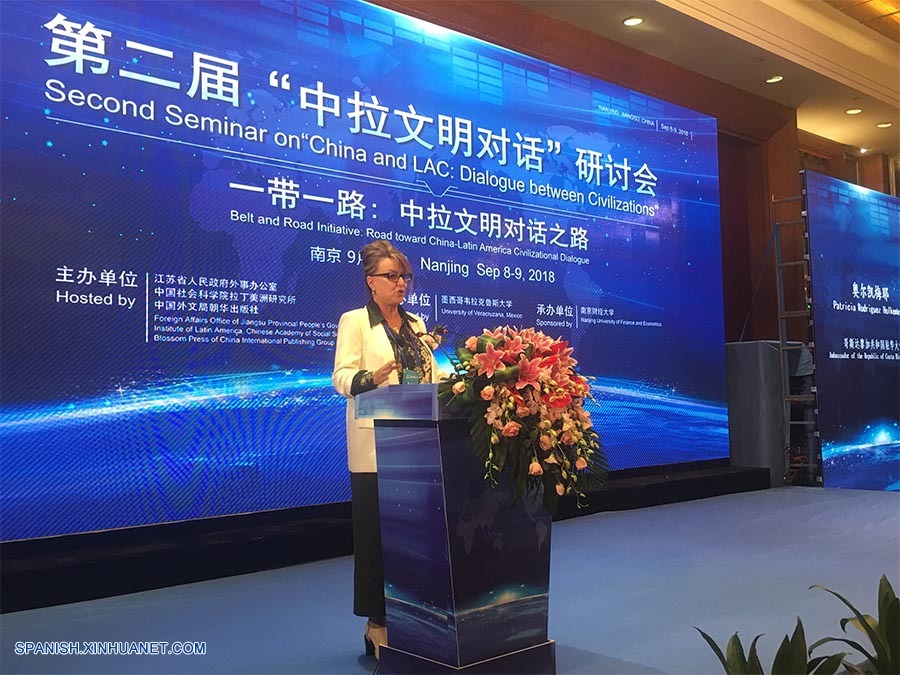 Embajadora de Costa Rica en China, Patricia Rodríguez Holkemeyer, pronuncia discurso en el II Seminario “China y América Latina y el Caribe: Diálogo entre civilizaciones”. (Xinhua/An Yang)