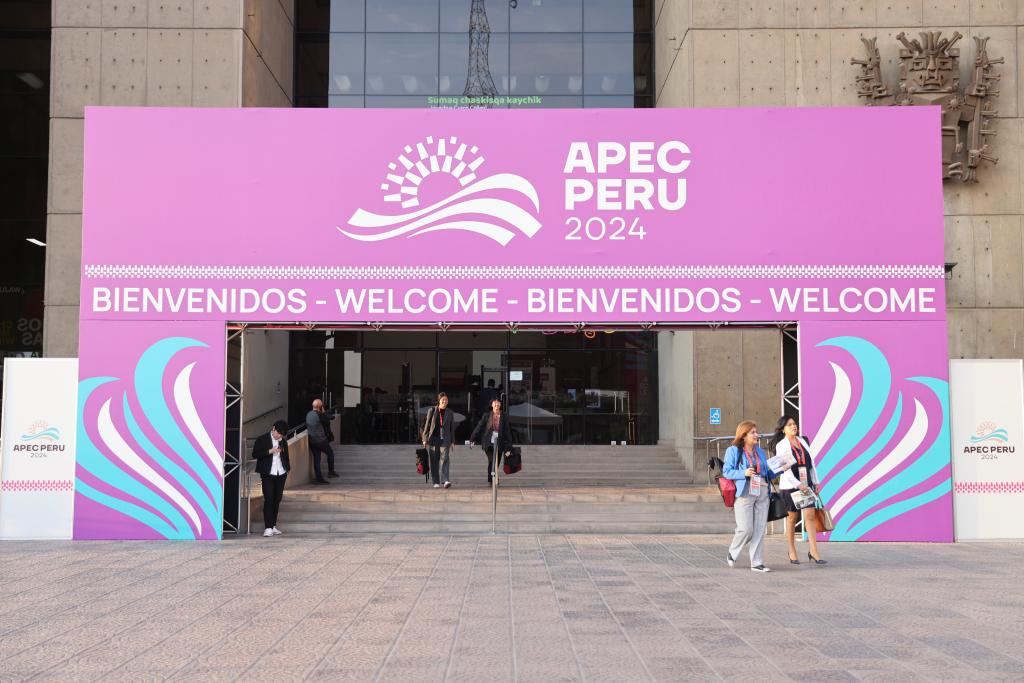 LIMA, 14 noviembre, 2024 (Xinhua) -- Imagen del 13 de noviembre de 2024 de la entrada del Centro Internacional de Prensa de APEC 2024, en Lima, Perú. La 31ª Reunión de Líderes Económicos de APEC se llevará a cabo en Lima. (Xinhua/Li Mengxin)