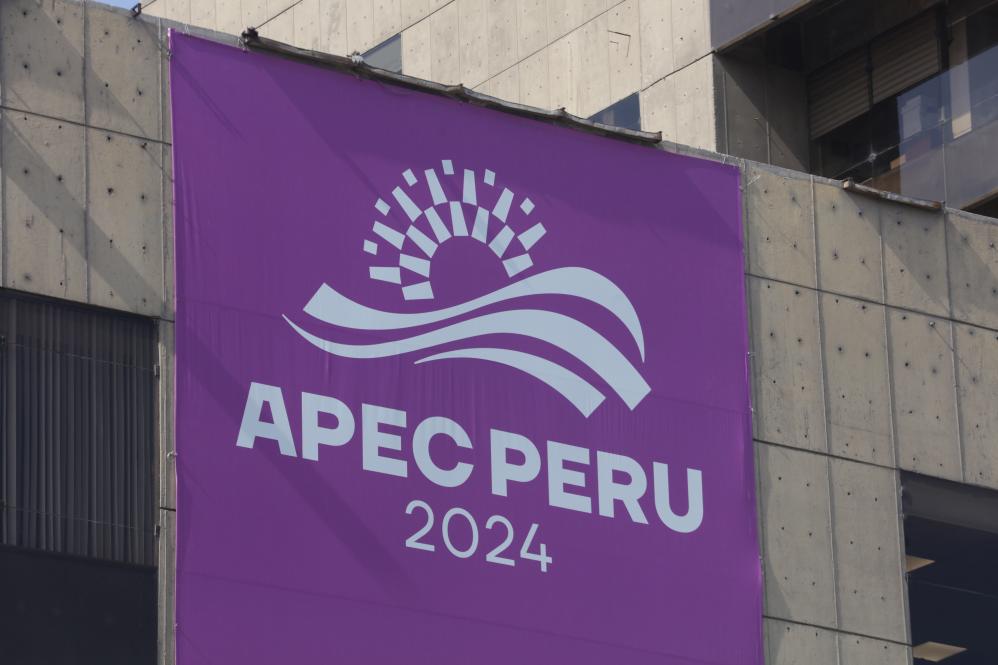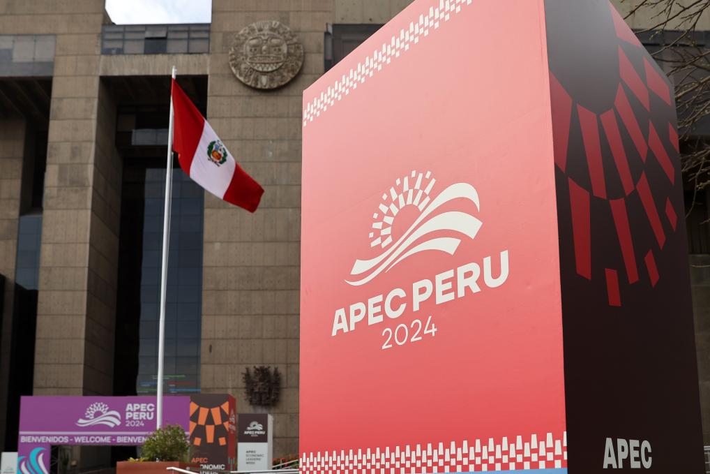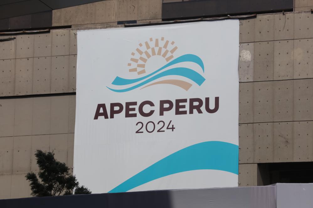 LIMA, 14 noviembre, 2024 (Xinhua) -- Imagen del 13 de noviembre de 2024 del logotipo de APEC 2024, en Lima, Perú. La 31ª Reunión de Líderes Económicos de APEC se llevará a cabo en Lima. (Xinhua/Mariana Bazo)