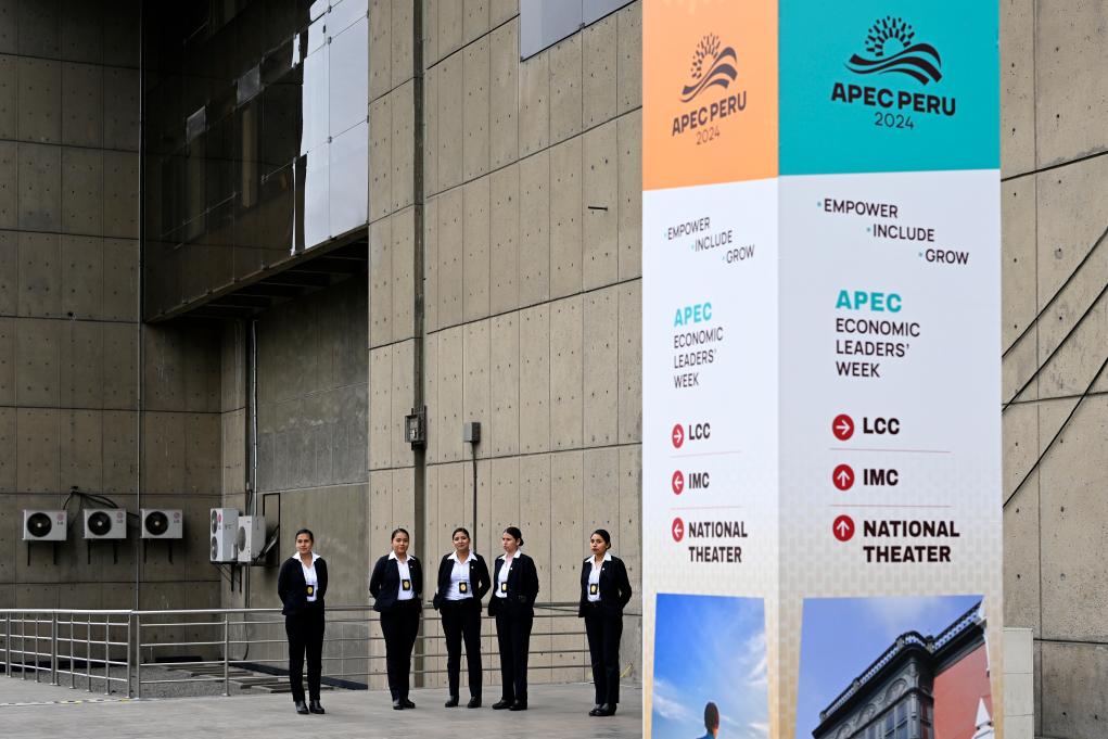 LIMA, 14 noviembre, 2024 (Xinhua) -- Imagen del 12 de noviembre de 2024 de personal de seguridad vigilando frente a la sede de la 31ª Reunión de Líderes Económicos de APEC, en Lima, Perú. La 31ª Reunión de Líderes Económicos de APEC se llevará a cabo en Lima. (Xinhua/Li Muzi)
