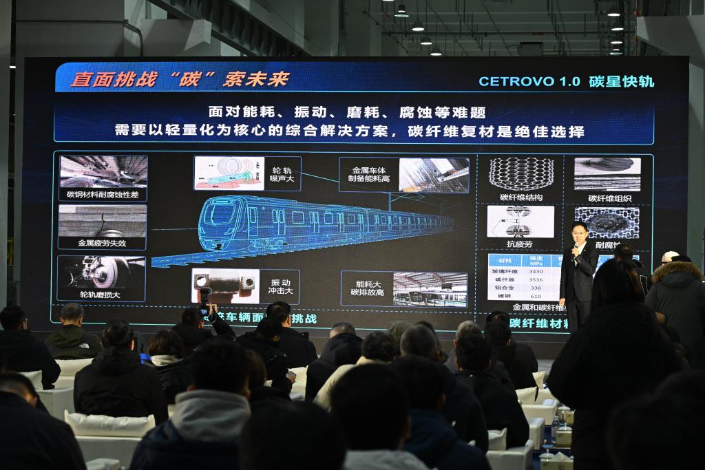 QINGDAO, 10 enero, 2025 (Xinhua) -- Un trabajador presenta el tren de metro CETROVO 1.0, en Qingdao, en la provincia de Shandong, en el este de China, el 10 de enero de 2025. El vagón de metro CETROVO 1.0 comenzó su operación en la Línea 1 del Metro de Qingdao el viernes. Con un cuerpo y un marco compuestos de fibra de carbono, es más ligero y más eficiente energéticamente que el tren de metro tradicional. (Xinhua/Li Ziheng)