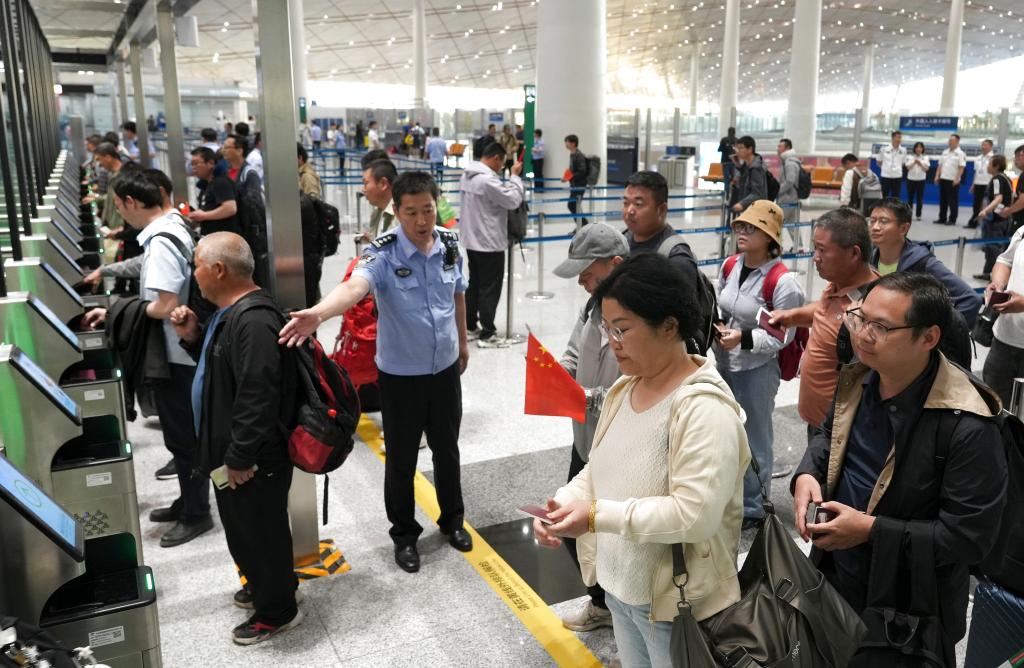 QUANZHOU, 21 junio, 2025 (Xinhua) -- Imagen del 20 de junio de 2025 de trabajadoras ayudando a los extranjeros a usar las aplicaciones locales en el Aeropuerto Internacional Jinjiang de Quanzhou, en Quanzhou, en la provincia de Fujian, en el sureste de China. La ciudad de Quanzhou publicó el viernes una guía de Quanzhou para expatriados y una guía de viaje para un tránsito sin visa de 240 horas en la ciudad. Los dos folletos ofrecen servicios de información completos, como asuntos gubernamentales, información sobre la vida y los negocios y planifican cuidadosamente el viaje a Quanzhou para los turistas en tránsito. (Xinhua/Jiang Kehong)