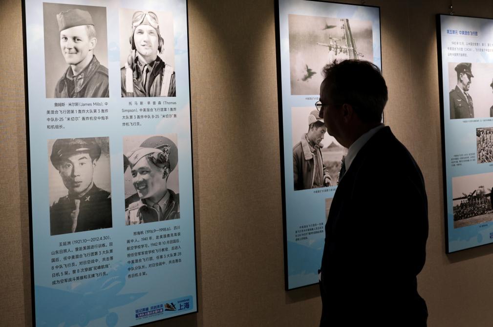 SHANGHAI, 8 julio, 2025 (Xinhua) -- Un visitante observa los objetos exhibidos en la Exposición Fotográfica de los Tigres Voladores, en Shanghai, en el este de China, el 8 de julio de 2025. Bajo el lema "Recordando a los héroes y creando el futuro juntos", la exposición se inauguró aquí el martes, mostrando cientos de fotografías valiosas, así como otros artículos de importancia histórica aportados por los veteranos de los Tigres Voladores. (Xinhua/Fang Zhe)