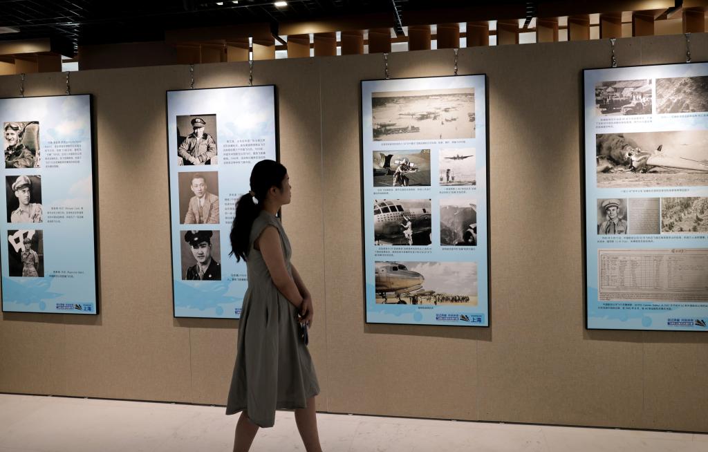 SHANGHAI, 8 julio, 2025 (Xinhua) -- Una visitante observa los objetos exhibidos en la Exposición Fotográfica de los Tigres Voladores, en Shanghai, en el este de China, el 8 de julio de 2025. Bajo el lema "Recordando a los héroes y creando el futuro juntos", la exposición se inauguró aquí el martes, mostrando cientos de fotografías valiosas, así como otros artículos de importancia histórica aportados por los veteranos de los Tigres Voladores. (Xinhua/Fang Zhe)