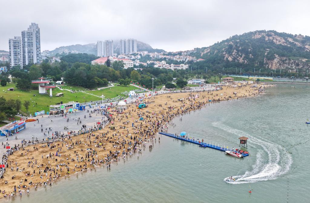 LIANYUNGANG, 5 octubre, 2025 (Xinhua) -- Vista aérea tomada con un dron el 5 de octubre de 2025 de personas visitando un parque costero, en la ciudad de Lianyungang, en la provincia de Jiangsu, en el este de China. Los destinos turísticos de toda China están experimentando un aumento en el número de visitantes desde que el miércoles comenzó el feriado de ocho días por el Día Nacional y el Festival del Medio Otoño. (Xinhua/Wang Jianmin)
