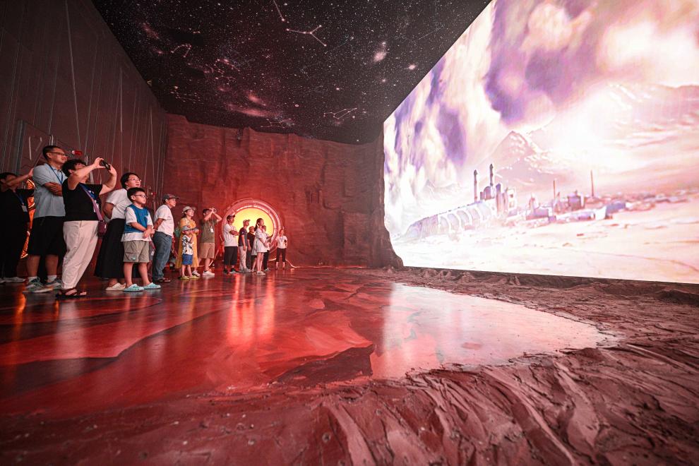 BEIJING, 7 octubre, 2025 (Xinhua) -- Personas observan un espectáculo en un parque, en Shanghai, en el este de China, el 7 de octubre de 2025. Turistas de todo el país no muestran señales de que su entusiasmo disminuya a medida que las vacaciones por el Día Nacional y el Festival del Medio Otoño llegan a su fin. (Xinhua/Wang Xiang)