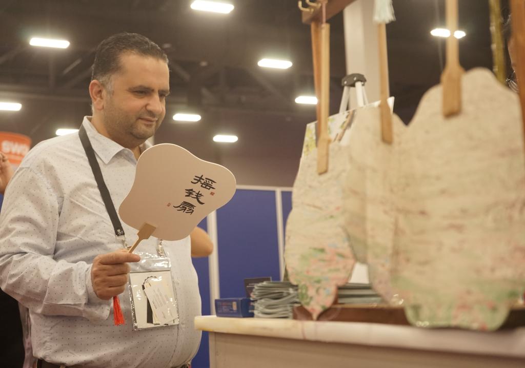 LAS VEGAS, 9 octubre, 2025 (Xinhua) -- Imagen del 8 de octubre de 2025 de un hombre visitando el estand de China durante IMEX America 2025 en el Centro de Convenciones Mandalay Bay, en Las Vegas, Nevada, Estados Unidos. Con una amplia gama de recursos turísticos y nuevos productos, el estand de China ha brillado en IMEX America 2025, atrayendo a multitudes de visitantes y representantes empresariales para intercambios y cooperación. (Xinhua/Zeng Hui)