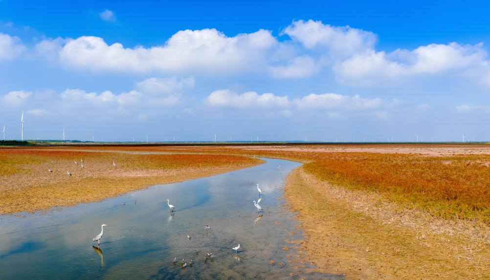 BEIJING, 11 octubre, 2025 (Xinhua) -- Vista aérea tomada con un dron el 11 de octubre de 2025 del paisaje de un humedal, en Dongtai, en la provincia de Jiangsu, en el este de China. (Xinhua/Sun Jialu)