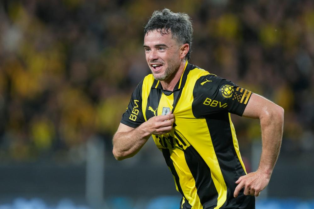 TIANJIN, 4 noviembre, 2025 (Xinhua) -- Ciclistas posan para una fotografía en un bosque de ginkgos en un parque forestal, en Tianjin, en el norte de China, el 4 de noviembre de 2025. (Xinhua/Sun Fanyue)