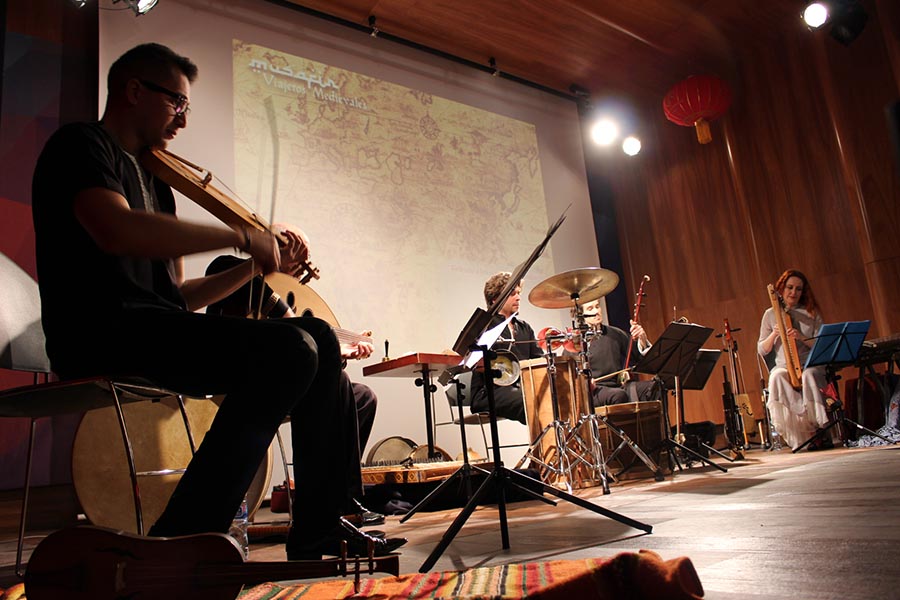 Las artes visuales y la música representan, ya desde la antigüedad, una valiosa herramienta de intercambio cultural. En la actualidad encontramos iniciativas que trabajan multilateralmente para la promoción de un diálogo intercultural. Así, las melodías de Musifir, Viajeros Medievales se complementan a la perfección con las imágenes presentadas en la muestra itinerante «CARTOGRAFÍA DE LOS CAMINOS, de Dunhuang al Románico en la Península Ibérica», promovida por el Instituto Cervantes de Pekín y el Instituto Confucio de Madrid. En el contexto de su actuación el 17 de marzo a las 19h en el Centro Cultural Chino de Madrid, Musifir, Viajeros Medievales nos hablan de su labor como puente entre este y oeste; pasado y presente.