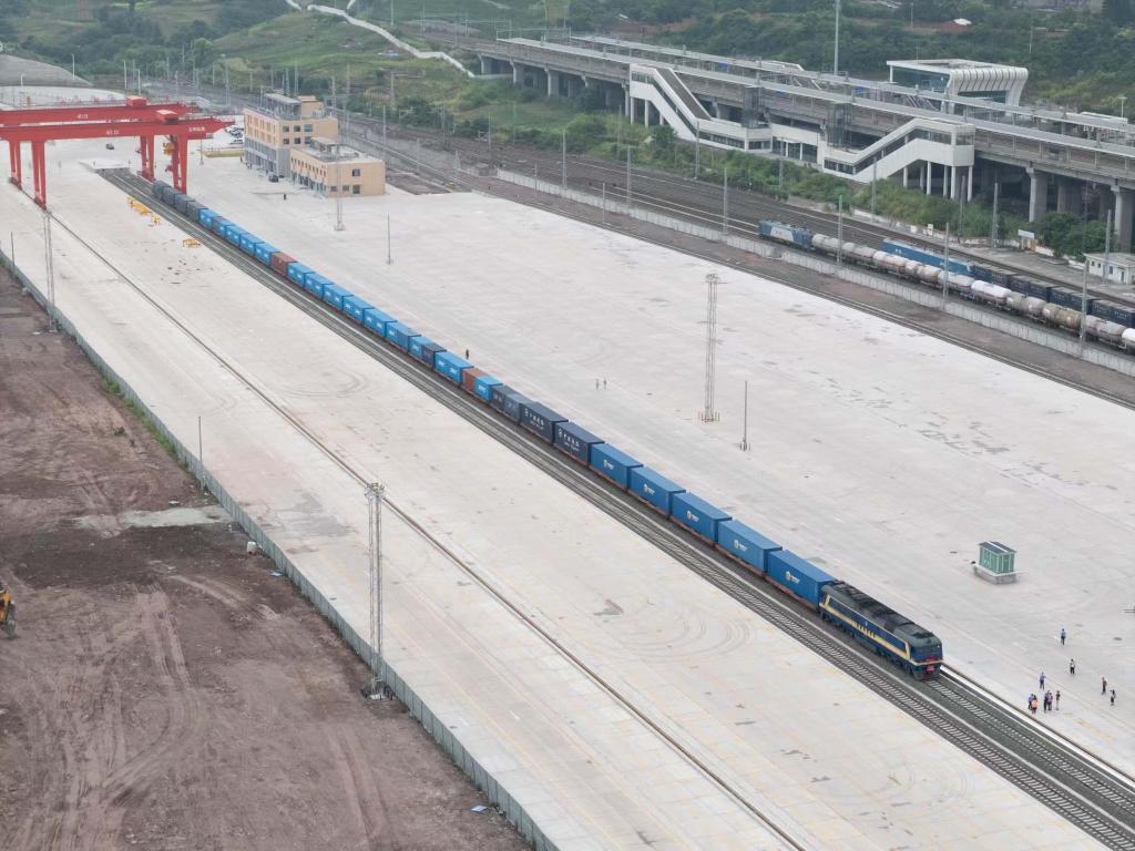 一列運載木薯澱粉的國際鐵路班列停靠在內江國際物流港(資料照片)。新華社發