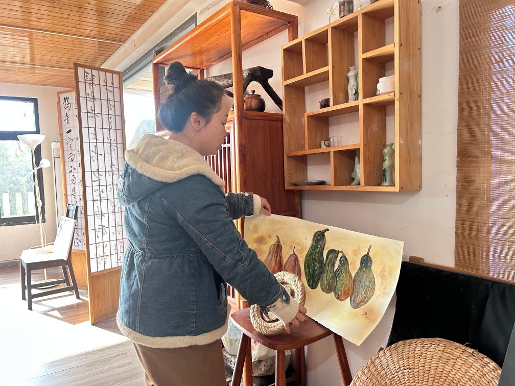 新華社武漢12月18日電(記者熊翔鶴)陽光透過窗欞,懶洋洋地落在畫桌上。一隻名為“莫奈”的玄貓躺在桌角,店主林一蓓收拾着顏料工具箱,準備開始一天的岩彩繪畫創作。屋外,鳥雀啾鳴,微風輕拂草木,隔壁農戶忙着為菜園松土。