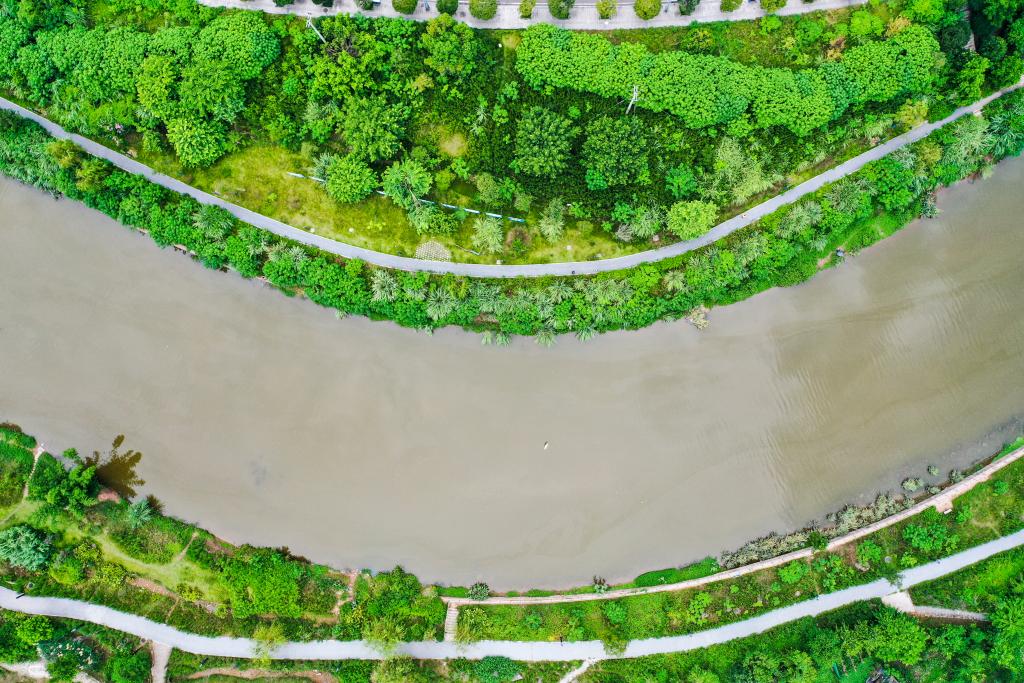 重慶市巴南區的花溪河經過生態修復後,成為一條水清岸綠的生態廊道。新華社記者王全超 攝