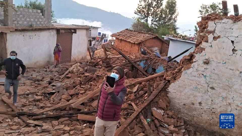 這是11月4日在尼泊爾西部扎澤爾果德拍攝的被地震損毀的房屋。