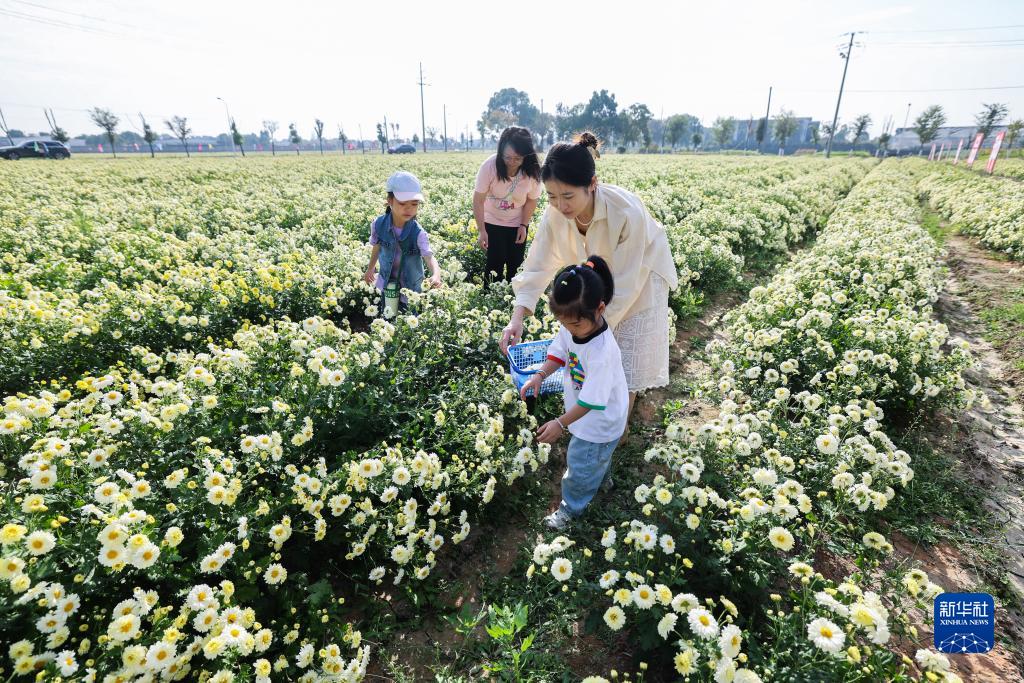 11月4日,游客在三村村杭白菊基地裏體驗杭白菊採摘。