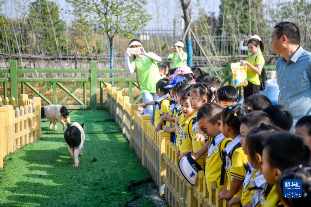 11月3日,小朋友在位於黃梅縣杉木鄉的鄂東動物王國參加研學活動。