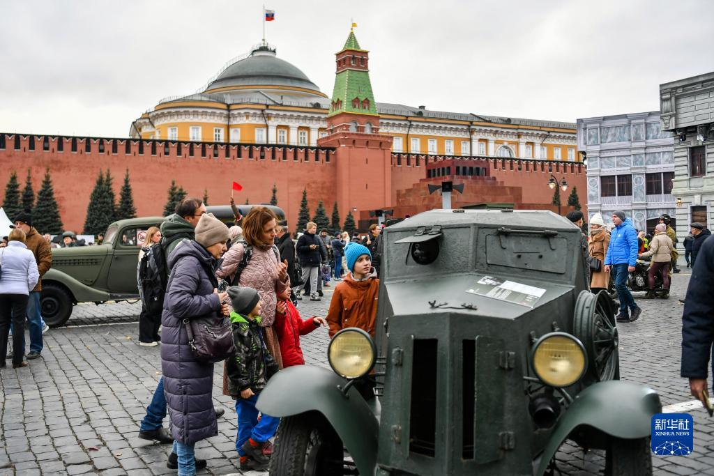 11月5日,在俄羅斯首都莫斯科,人們參觀以紀念1941年蘇聯紅場閱兵式為主題的露天展覽。