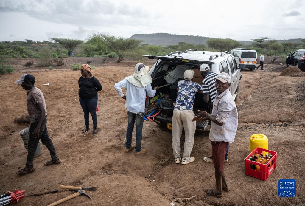 11月3日,中肯聯合考古隊隊員在位於肯尼亞巴林戈郡馬里加特鎮的考古現場整理工具。