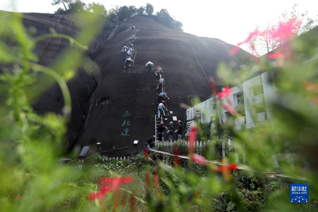 11月4日,在湖南省資興市雄鷹戶外營地,游客在體驗攀岩。