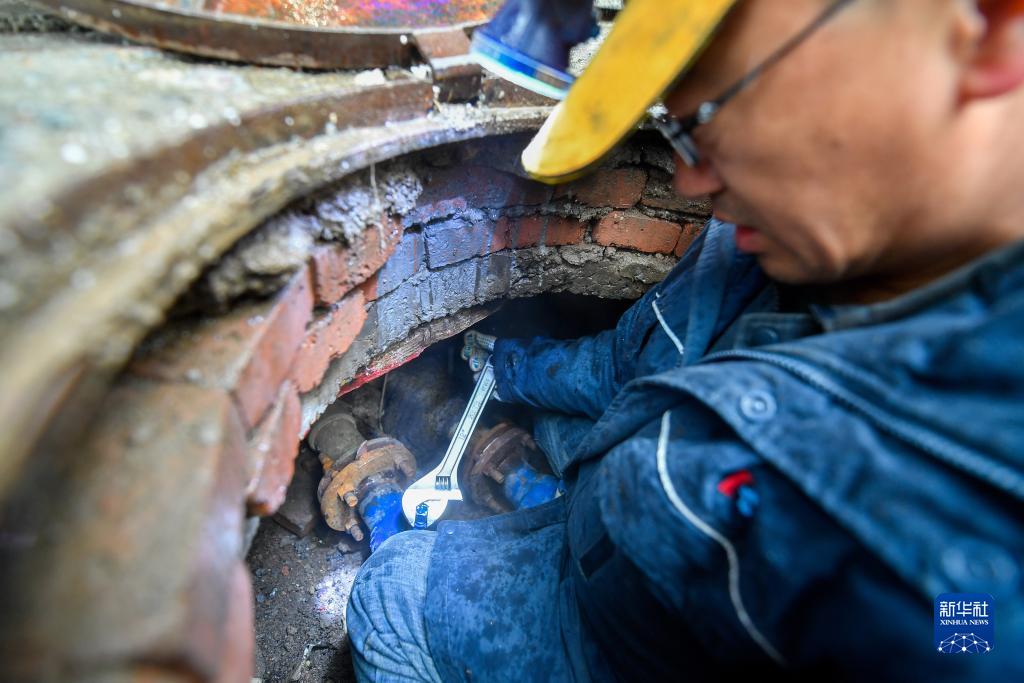 11月6日,吉林省春城熱力股份有限公司永昌事業部百匯站工作人員在檢修供熱管線。