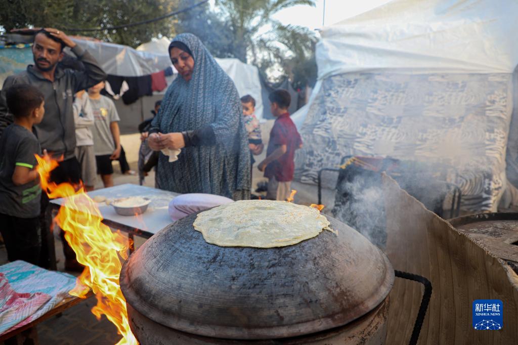 11月6日,因缺乏燃料,在加沙地帶南部城市汗尤尼斯的一處臨時難民營,人們用粘土砌成的爐子烤制麵包。