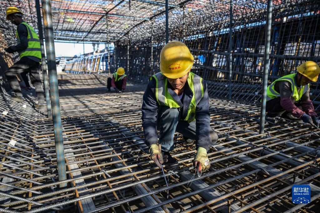 11月6日,中鐵四局施工人員在合新鐵路安徽段眾興制梁場箱梁預製現場施工。