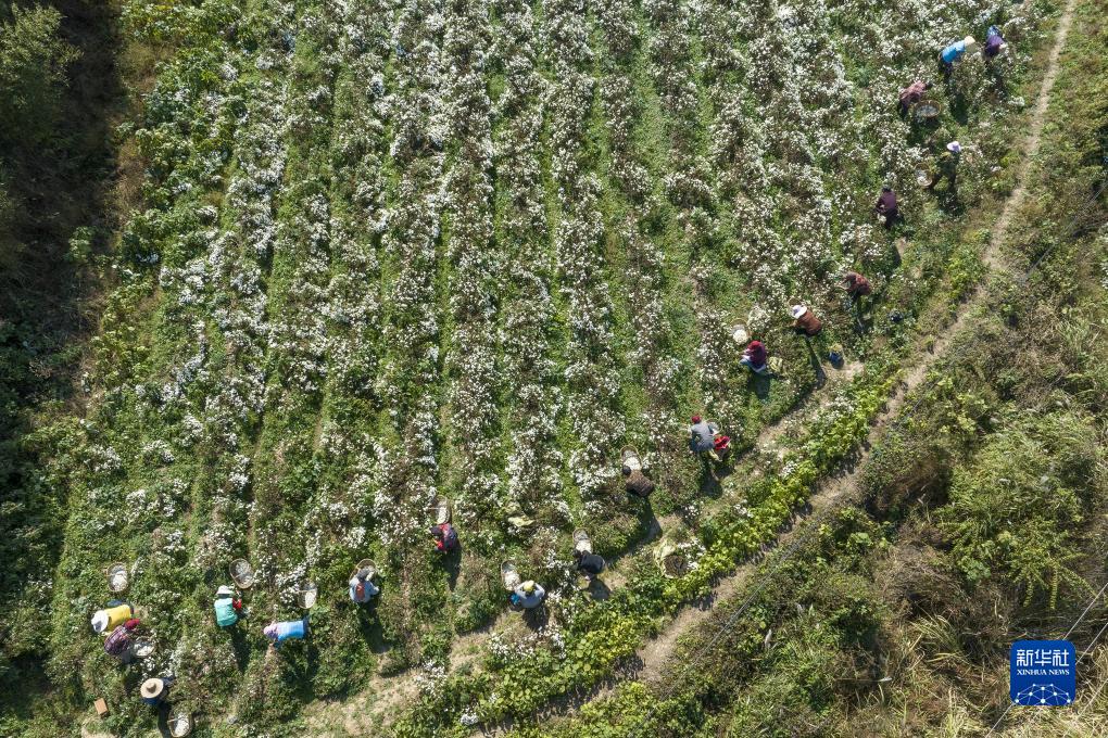 近日,安徽省蕪湖市繁昌區峨山鎮東島村貢菊種植基地的菊花進入收穫期,當地村民搶抓晴好天氣採摘、加工。近年來,東島村大力發展菊花産業,採取“合作社+種植大戶+農戶”共同經營的模式,通過土地流轉、用工、分紅等方式幫助當地群眾增收。