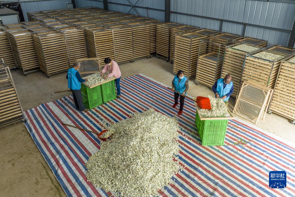 近日,安徽省蕪湖市繁昌區峨山鎮東島村貢菊種植基地的菊花進入收穫期,當地村民搶抓晴好天氣採摘、加工。近年來,東島村大力發展菊花産業,採取“合作社+種植大戶+農戶”共同經營的模式,通過土地流轉、用工、分紅等方式幫助當地群眾增收。