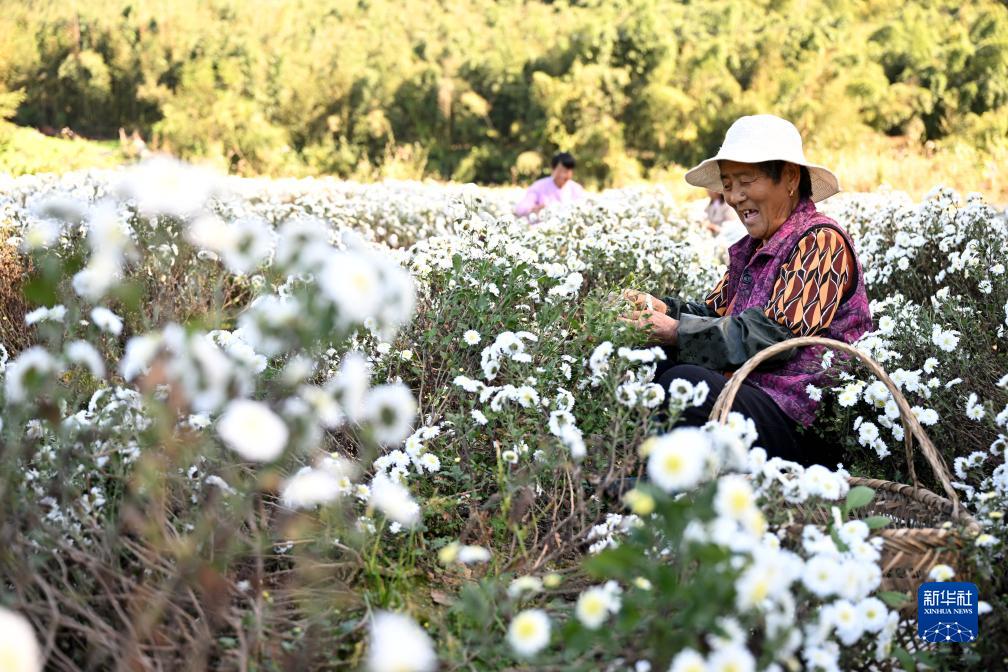 近日,安徽省蕪湖市繁昌區峨山鎮東島村貢菊種植基地的菊花進入收穫期,當地村民搶抓晴好天氣採摘、加工。近年來,東島村大力發展菊花産業,採取“合作社+種植大戶+農戶”共同經營的模式,通過土地流轉、用工、分紅等方式幫助當地群眾增收。