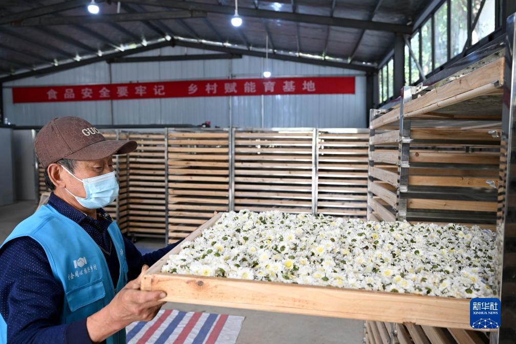 近日,安徽省蕪湖市繁昌區峨山鎮東島村貢菊種植基地的菊花進入收穫期,當地村民搶抓晴好天氣採摘、加工。近年來,東島村大力發展菊花産業,採取“合作社+種植大戶+農戶”共同經營的模式,通過土地流轉、用工、分紅等方式幫助當地群眾增收。