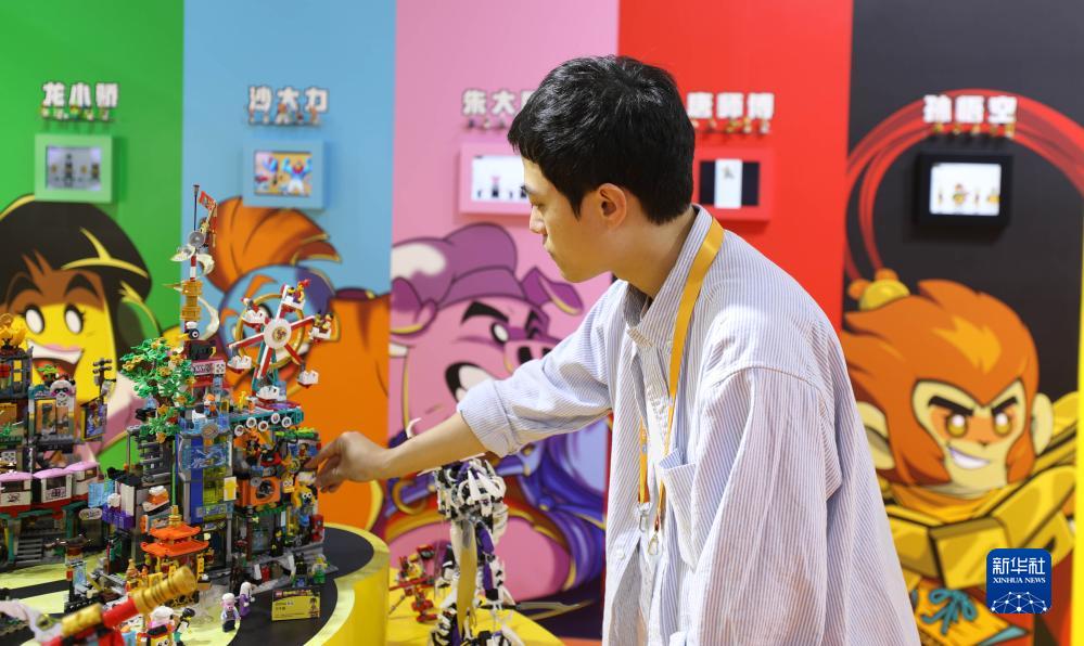 11月6日,在第六屆進博會消費品展區樂高集團展&,樂高設計師溫笑冬介紹其參與設計並在本屆進博會首發的樂高悟空小俠萬千城玩具套裝。