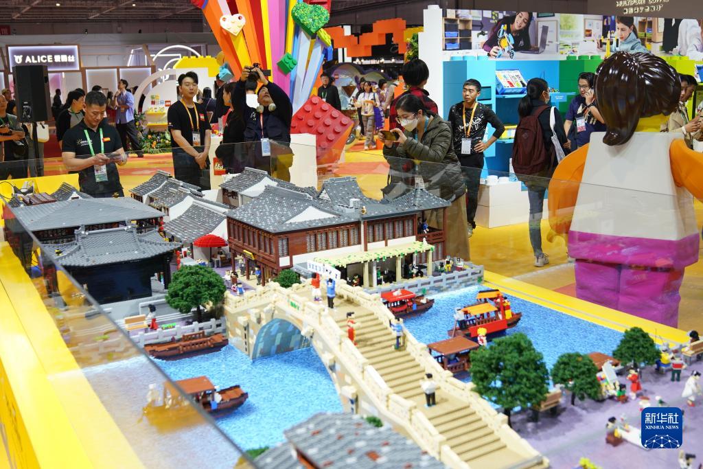 11月7日在第六屆進博會消費品展區樂高集團展&拍攝的楓涇古鎮樂高模型。