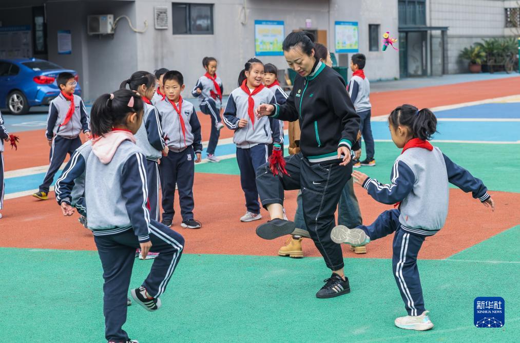 為解決“課間十分鐘”變成“課間圈養”的問題,浙江省湖州市各中小學校在充分保障課間十分鐘休息時間不被擠佔的同時,提升操場硬體水平並由老師帶領學生開展豐富多樣的課間游戲及體育活動,讓學生們享受室外活動的快樂。