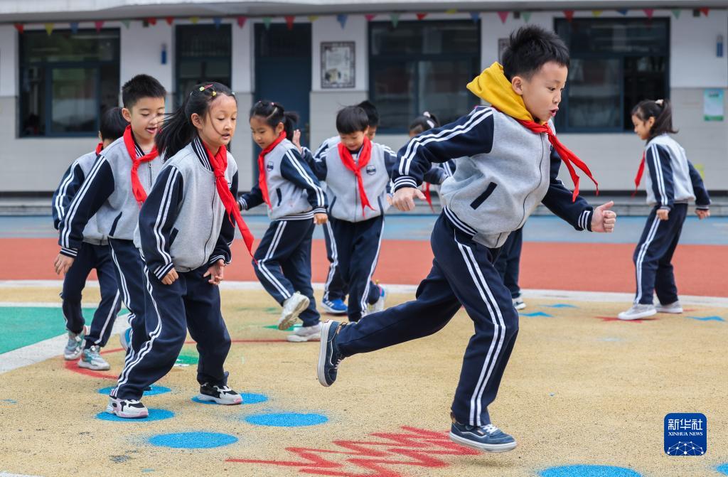 為解決“課間十分鐘”變成“課間圈養”的問題,浙江省湖州市各中小學校在充分保障課間十分鐘休息時間不被擠佔的同時,提升操場硬體水平並由老師帶領學生開展豐富多樣的課間游戲及體育活動,讓學生們享受室外活動的快樂。