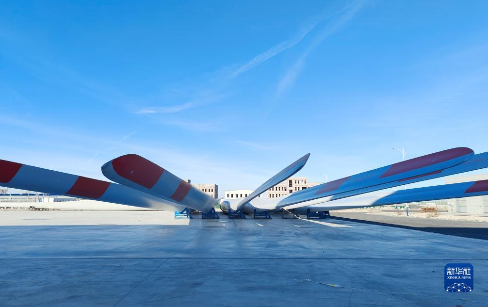 這是11月8日在三一(塔城)風電設備有限公司拍攝的風機葉片。
