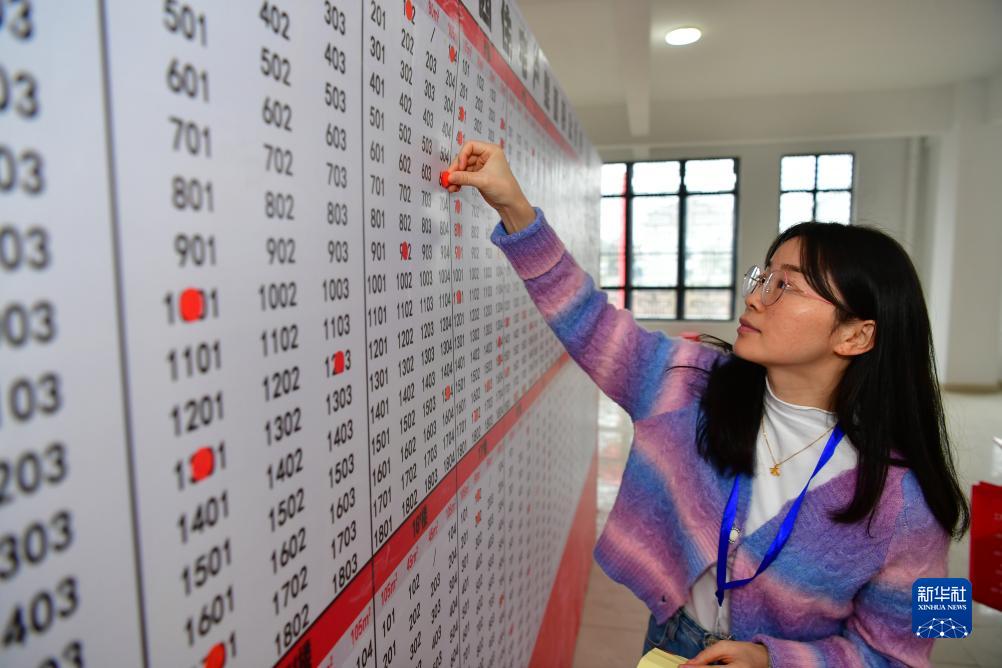 11月9日,肥西縣銘傳鄉工作人員在回遷安置房選號現場登記已選房源。