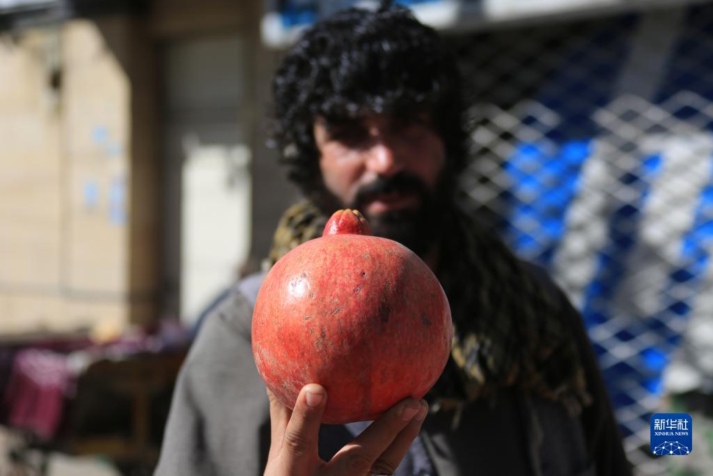 11月10日,在阿富汗首都喀布爾,商販展示産自阿富汗南部坎大哈省的石榴。