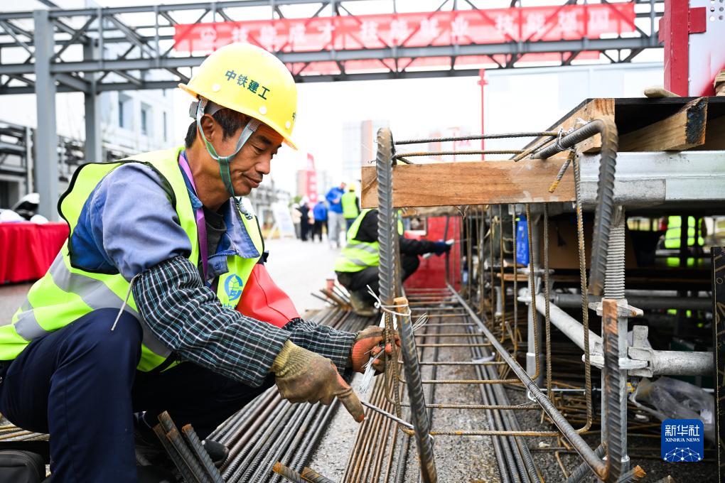 當日,中鐵建工集團南京大尺寸硅外延材料産業化項目現場舉行華夫板安裝職業技能競賽,36名工人比拼技能,一展身手。