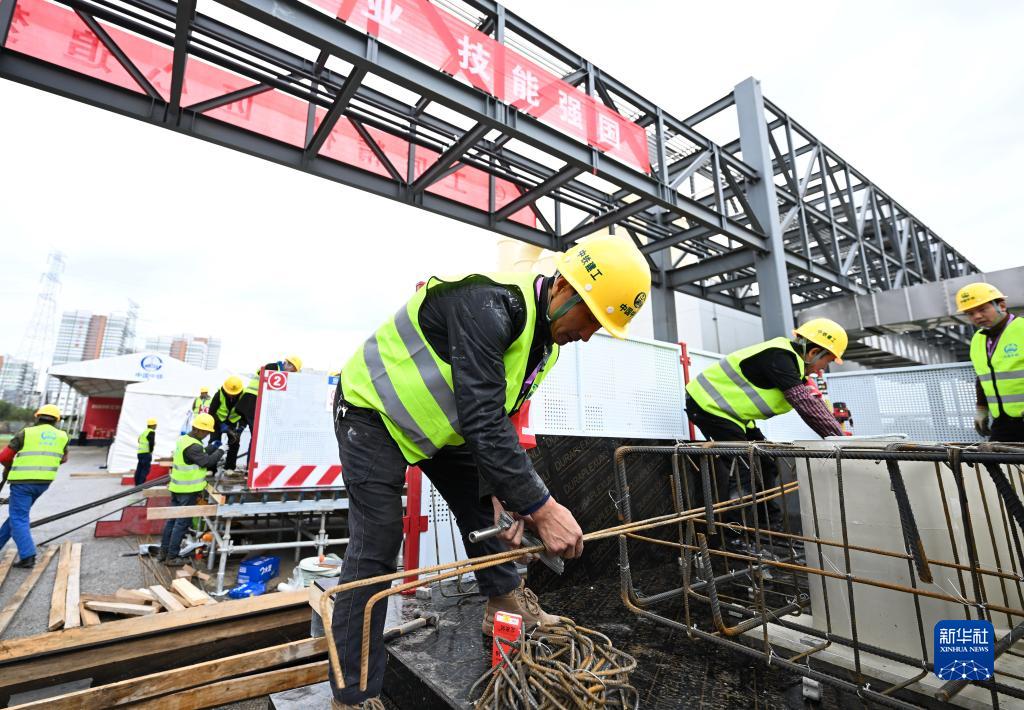 當日,中鐵建工集團南京大尺寸硅外延材料産業化項目現場舉行華夫板安裝職業技能競賽,36名工人比拼技能,一展身手。