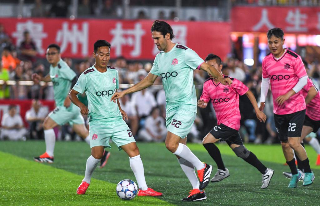 2024年5月27日,卡卡(中)在“逐夢”冠軍明星公益賽中。新華社記者 楊文斌 攝