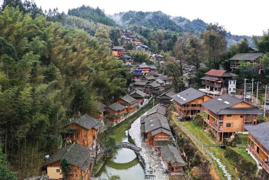 這是2024年3月18日拍攝的貴州省榕江縣栽麻鎮大利侗寨民宿(無人機照片)。新華社記者 楊文斌 攝