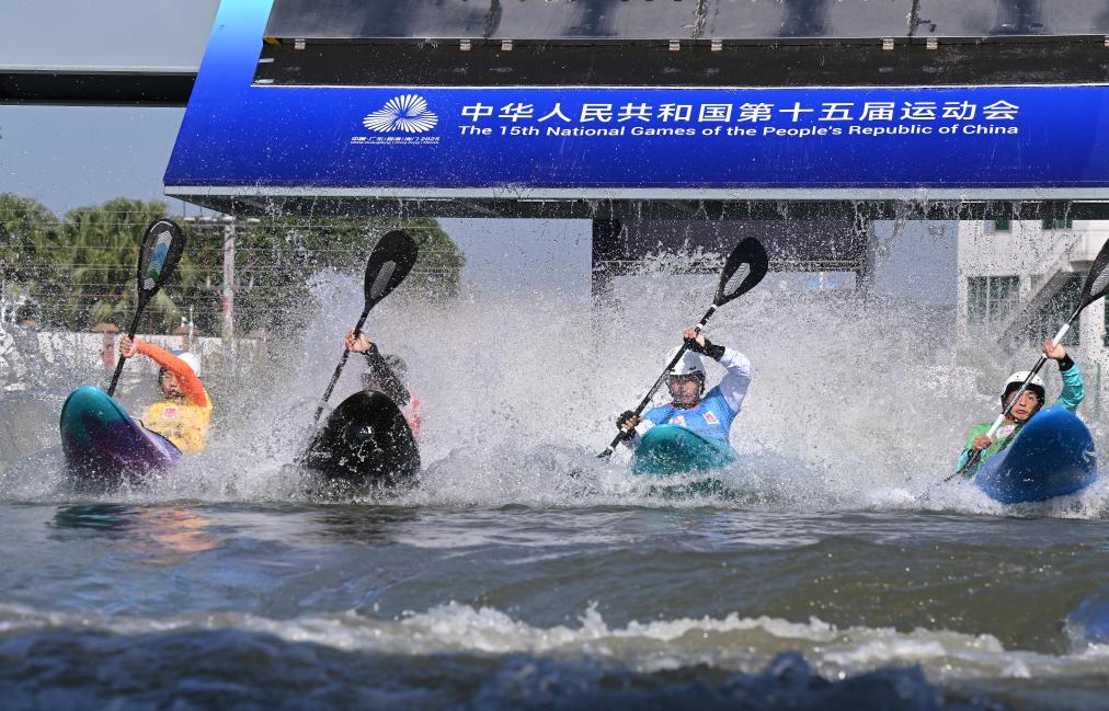 15日,十五運會皮划艇激流迴旋男子極限皮艇決賽進行,全鑫一出發就落後於胡兆山,後者是他在男子單人皮艇決賽中的強力對手,在13日的那場決賽中,全鑫和胡兆山分別奪得金、銀牌。