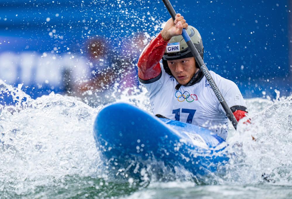 2024年8月2日,中國選手全鑫在比賽中。當日,巴黎奧運會皮划艇激流迴旋男子極限皮艇計時賽在馬恩河畔韋爾水上體育場舉行。新華社記者 孫非 攝