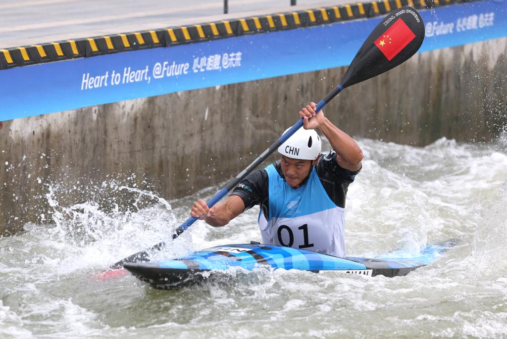 擋板一彈開,經過第一個順水門時胡兆山就處在領先位置,全鑫在加速追趕,但直到6號門——最後一個逆水門時,胡兆山還是保持領先優勢。觀眾開始躁動起來,胡兆山有望為廣東隊奪得他們在激流迴旋賽場上的首金。