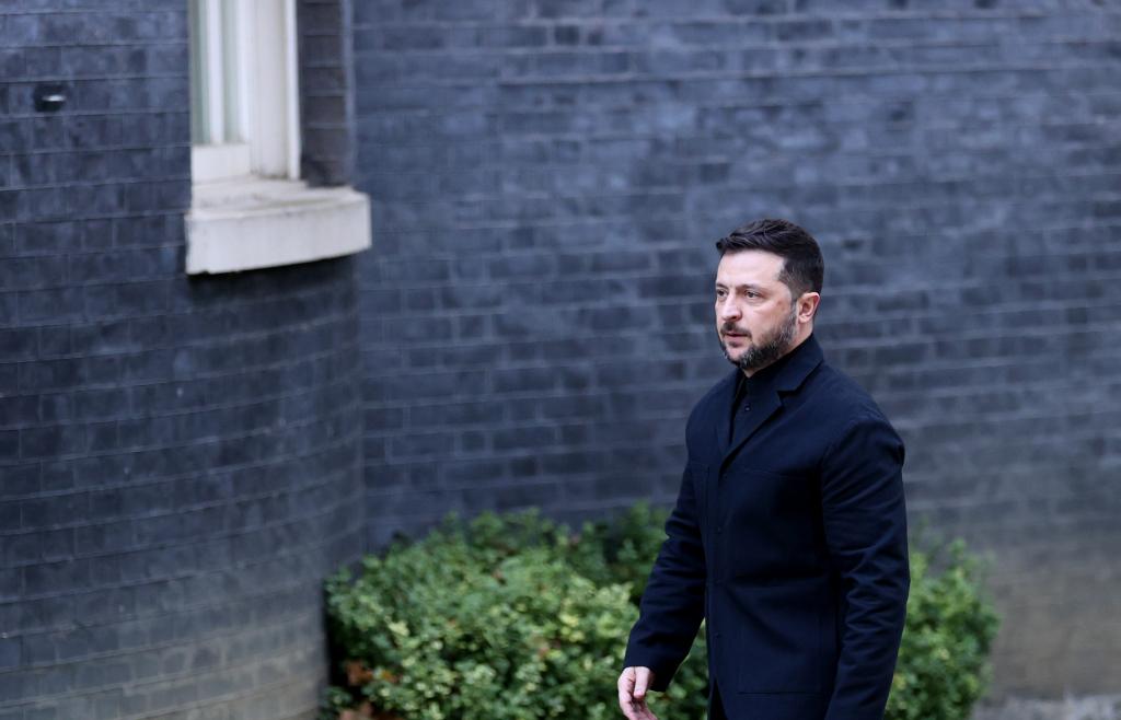 10月24日,在英國倫敦,烏克蘭總統澤連斯基走向唐寧街10號首相府。新華社記者李穎攝